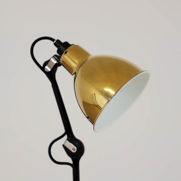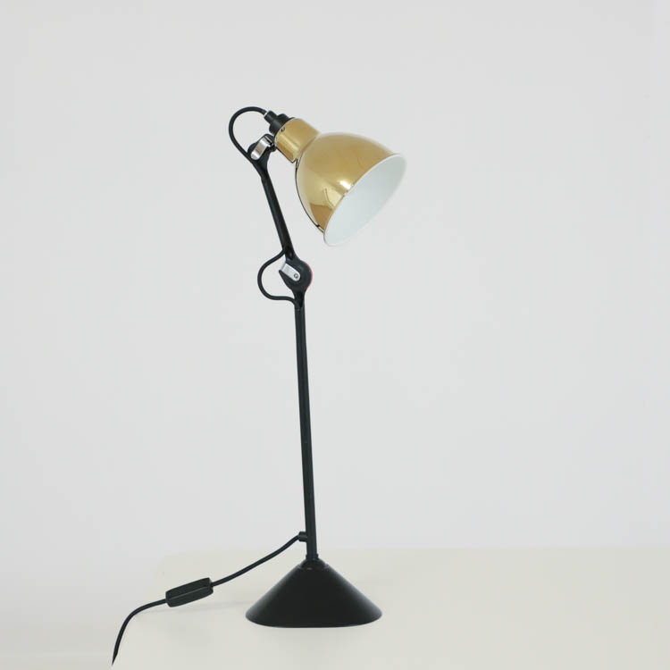 Modellen N°205 har en justerbar arm och ett runt lampskärm, vilket gör den mycket flexibel och idealisk för användning på skrivbord, sidobord eller låga bord. Lampan är tillverkad av robust stål i mässing och svart bas, vilket ger den en elegant och modern look.