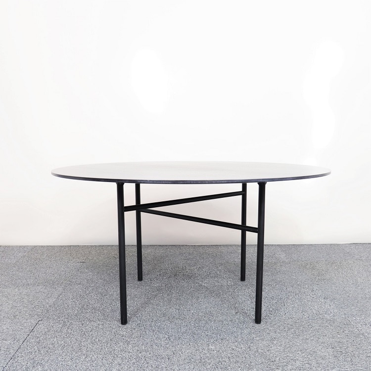 Med sin minimalistiska och grafiska design ger verkligen bordet Snaregade från danska Menu ett unikt uttryck. Svarta ben i pulverlackerat stål med en elegant utformad skiva med yta i svartbetsad ekfaneer som är slitstark och passar därför perfekt i offentliga miljöer så som mötesrummet eller personalmatsalen.