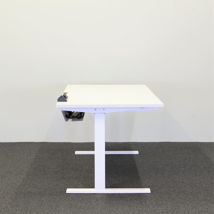 Detta smidiga höj- och sänkbara skrivbord passar utmärkt både på kontoret och i hemmet. Bordet höjs och sänks med en knappsats som sitter under bordsskivan och har även funktionen att dra ut bordsskivan för att komma åt kabeldiket undertill. Det finns två eluttag samt två USB-uttag för att ladda diverse elektrisk utrustning direkt vid skrivbordet. Detta gör det enkelt att hålla ordning på alla kablar och ger en ren arbetsyta både på golvet och bordsskivan.
