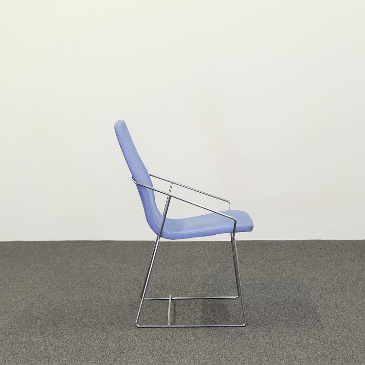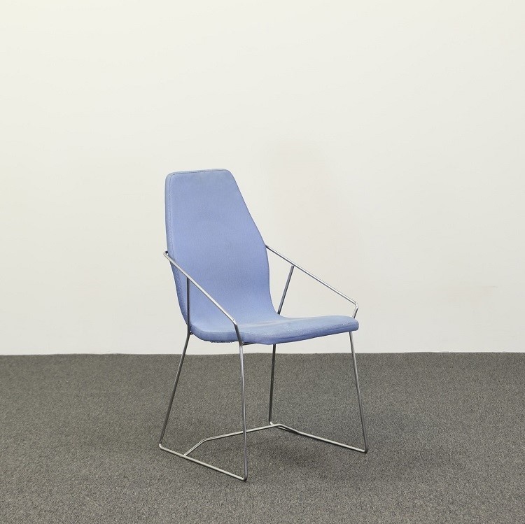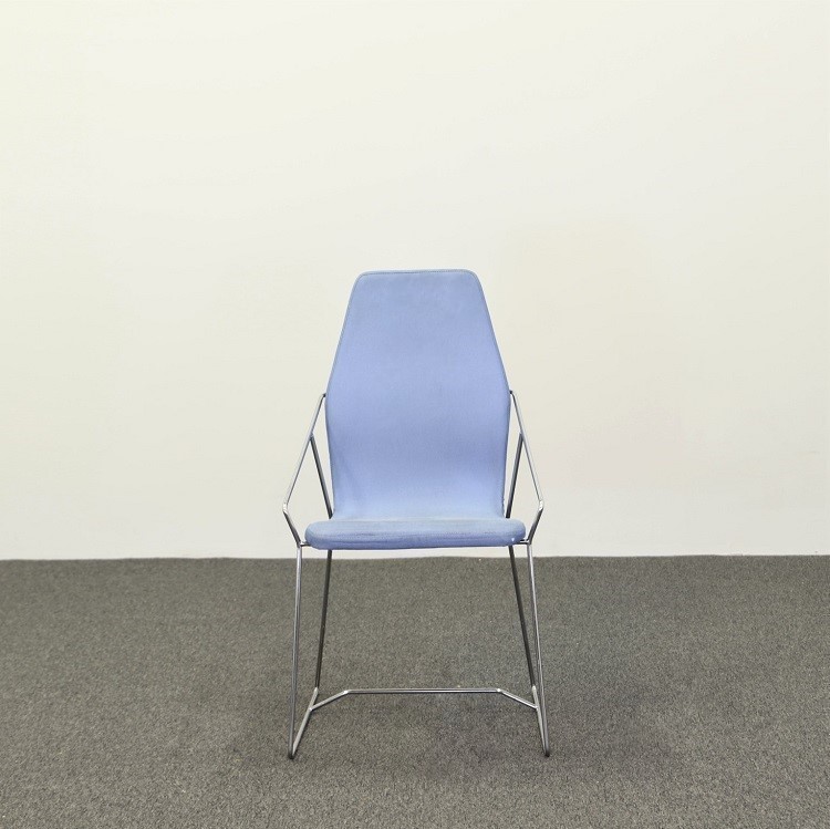 Modellen Aeon i ett ljusblått tyg och kromat underrede kommer från Skandiform, designad av Eero Koivisto. Stolen beskrivs som “Minimalistisk perfektion” och det är svårt att inte hålla med. Den passar in lika bra i offentliga miljöer som privata och fungerar utmärkt både som caféstol och konferensstol.