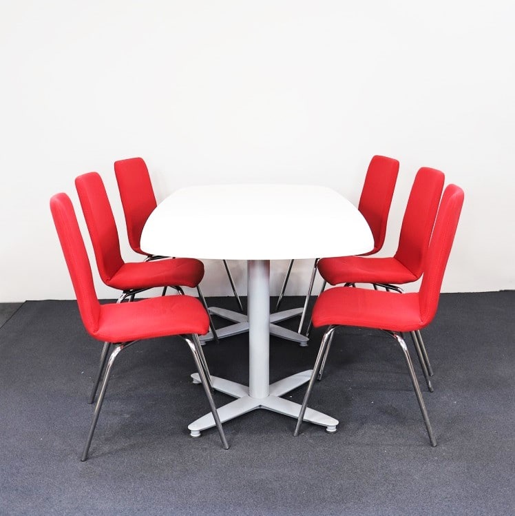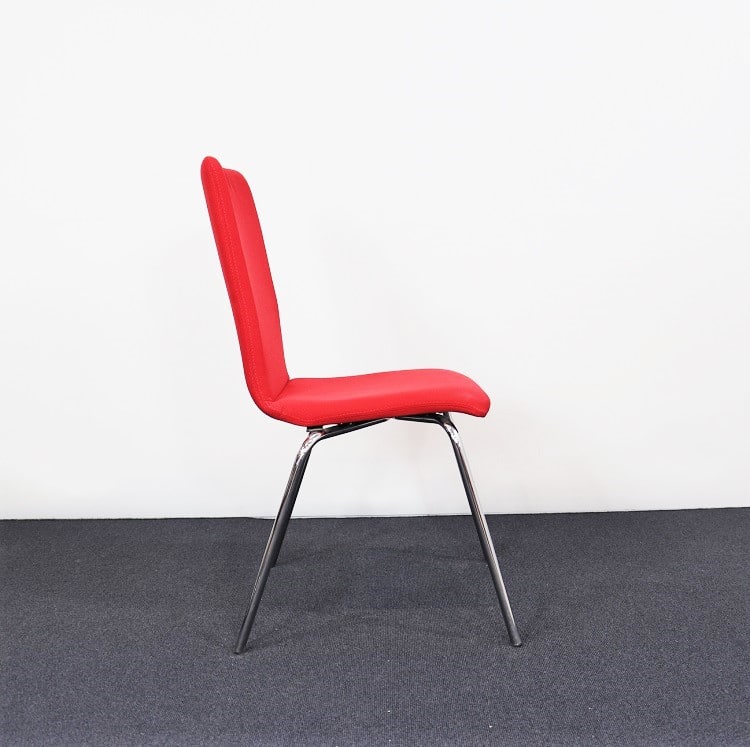 Stolen Bristol passar perfekt såväl på konferensen och mötet som i lunchrummet tack vare sin ytterst bekväma stoppning. Ben i krom och slitstarkt rött tyg. Bristol är stapelbar.