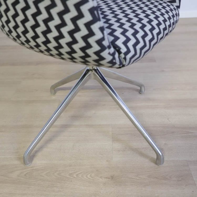 drejefunktion, forkromede metalben og sækkelærredsmønstret stof på sædet