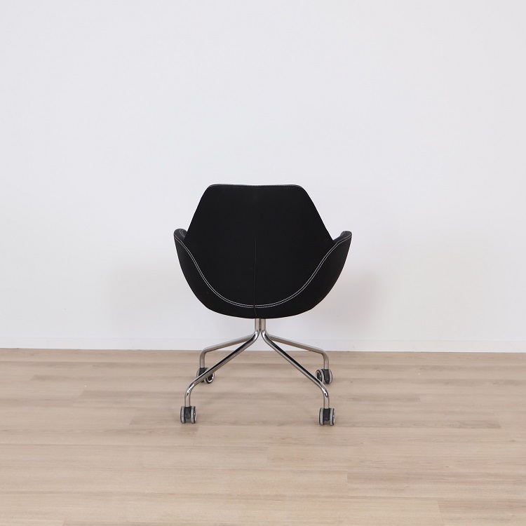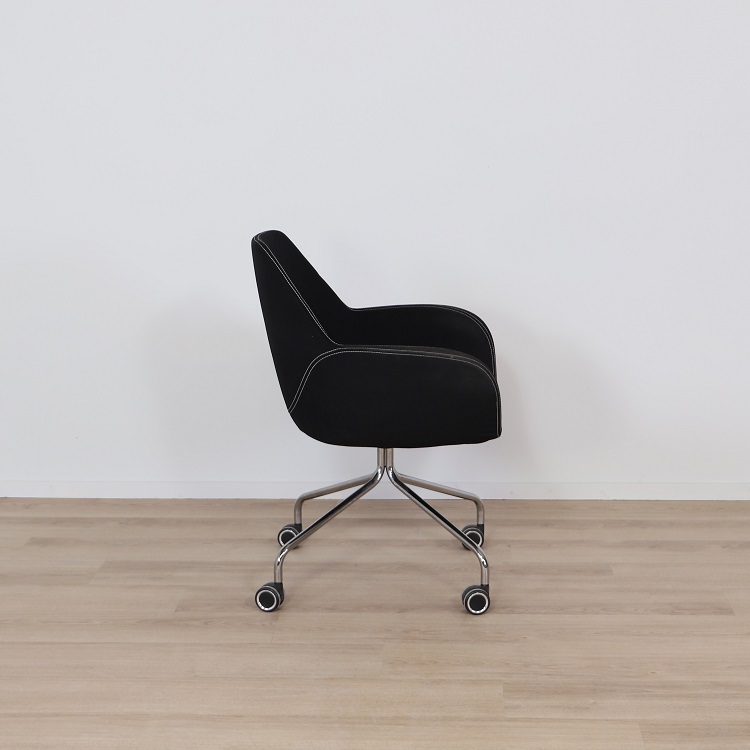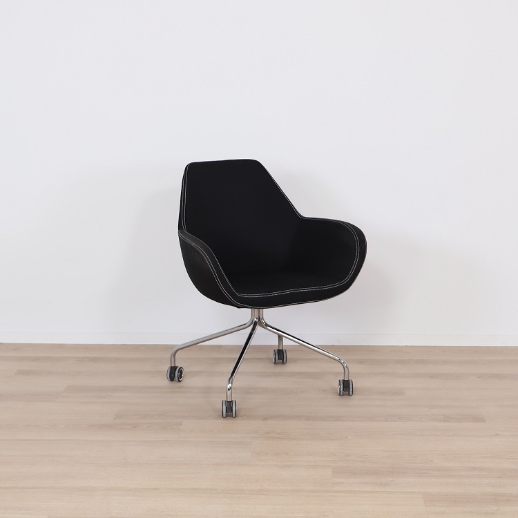 Stolen Fan från Profim passar i kontorets alla utrymmen som besöksstol på kontoret, som mötesstol i konferensrummet, i öppna sociala ytor samt i reception. Den skalformade designen omsluter på ett mycket bekvämt sätt. Den svarta stolen med vita stickningar och kromade ben ger ett elegant uttryck som passar i de flesta utrymmen. Stolens sits och rygg är väl vadderade och klädda i mjukt tyg, vilket ger en skön känsla och stöd under längre sittningar. Fan är dessutom utrustad med hjul för enkel förflyttning, vilket gör den lätt att flytta runt i konferensrummet eller kontorsmiljön.