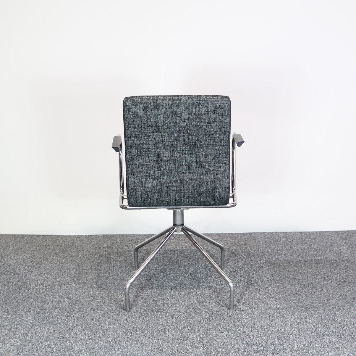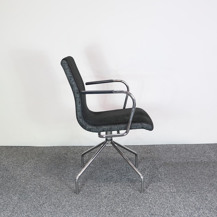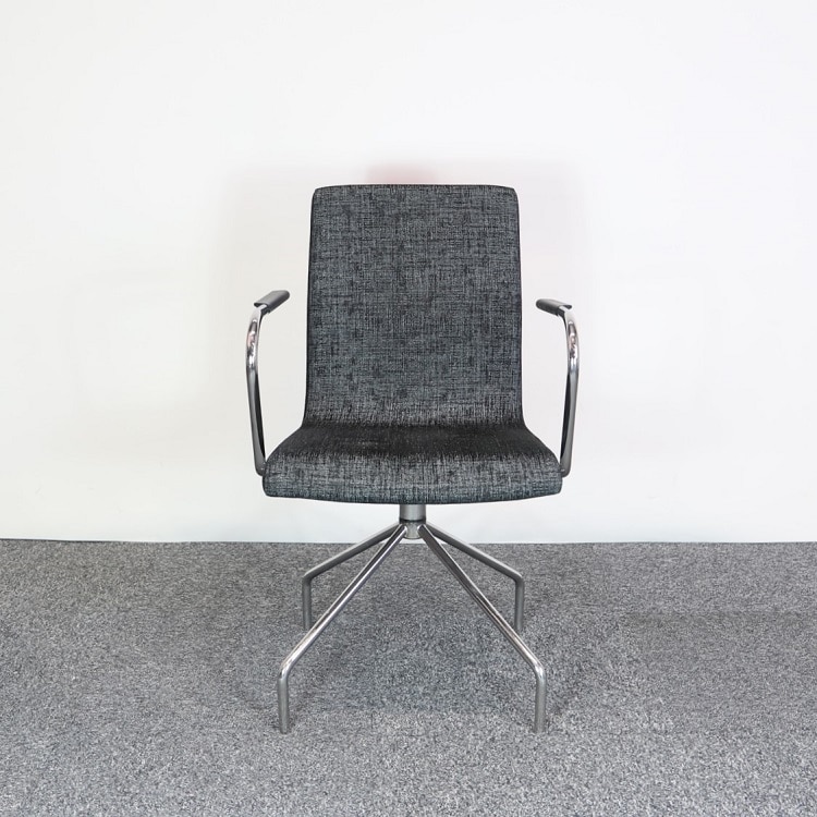 En tidlös och klassisk karmstol i ett slitstarkt grått tyg. Snurrbart underrede i krom gör stolen flexibel och smidig och passar därför bra i konferensrum och lounge. Armstöd med svarta detaljer i plast som ger avlastning för axlar. Konferensstolen Flex är ett väldigt bra alternativ om man vill komma åt både komfort och design.