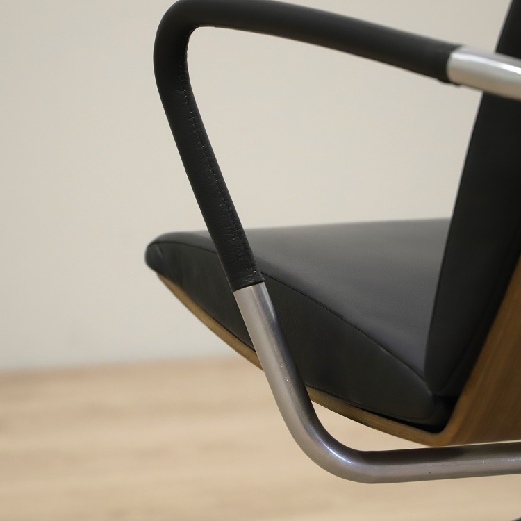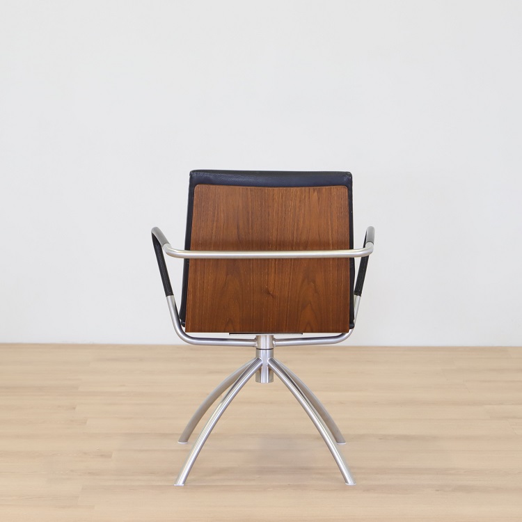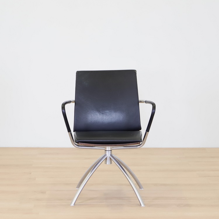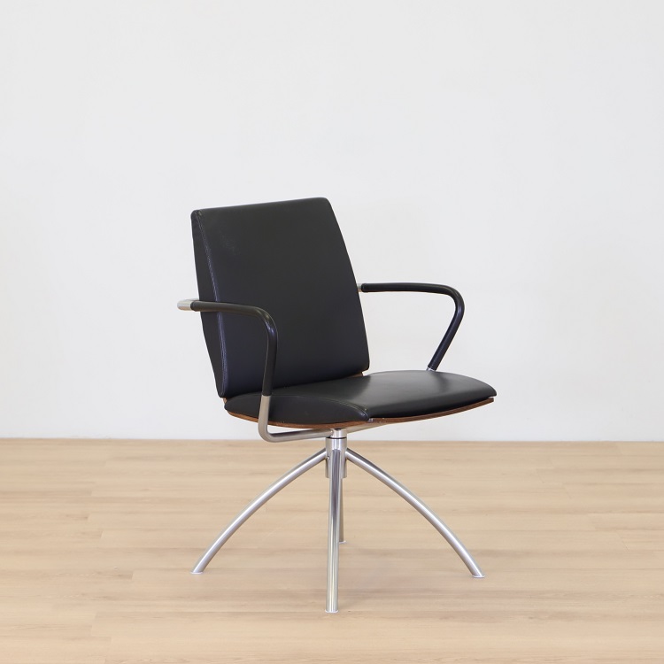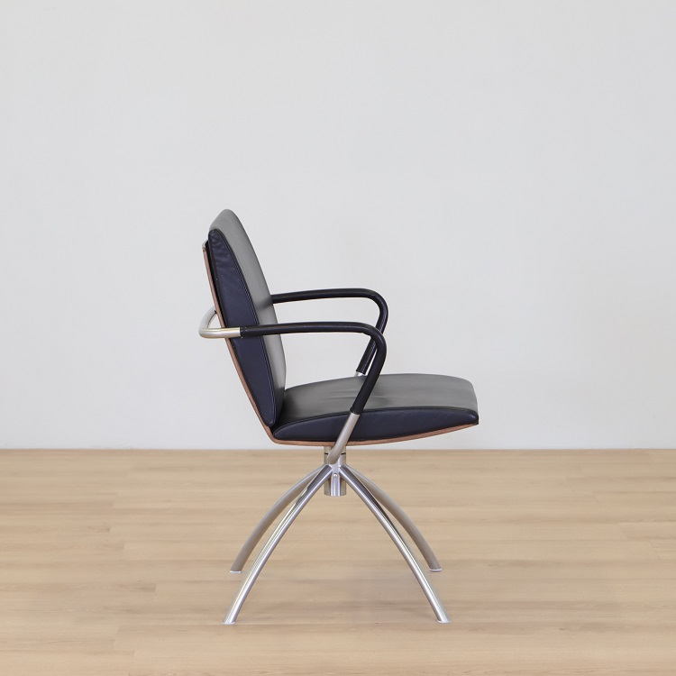 -Riktigt exklusiva konferensstolar som ger en riktig känsla av lyx i rummet du placerar dem. Allt utstrålar kvalité, från materialvalen med ryggstöd i fanerad valnöt, rejält stoppad sits i svart läder med stativ i aluminium, till den stilrena och strömlinjeformade designen. Armstöden ger ytterligare komfort och gör deltagande på konferensen eller mötet till en härlig upplevelse.