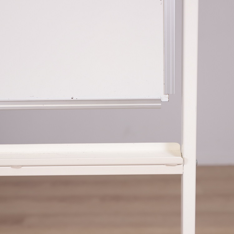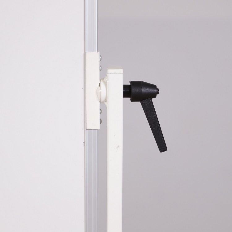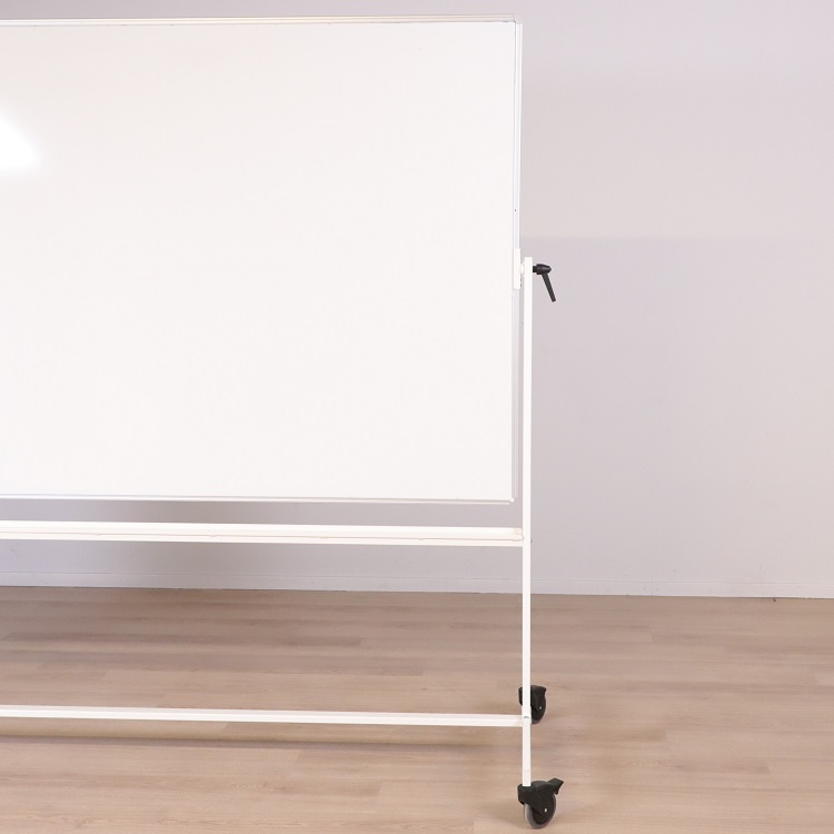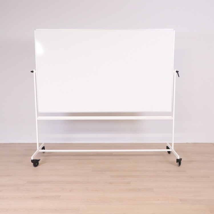 Optimera din arbetsplats eller mötesrum med en mobil whiteboard på hjul. Den här praktiska och mångsidiga whiteboarden är utformad för att ge enkel rörlighet och effektiv användning i olika sammanhang. Dess dubbelsidiga utförande gör det möjligt att låta tankar och idéer flöda, utan att utrymmet tar slut. Fyll whiteboardens båda sidor med stödord, anteckningar och tankekartor för att maximera innehållet i mötet, lektionen eller föreläsningen.. Dessutom har whiteboarden ett vred på vardera sida som möjliggör att du kan ställa in tavlan i en passande vinkel när du skriver på tavlan.