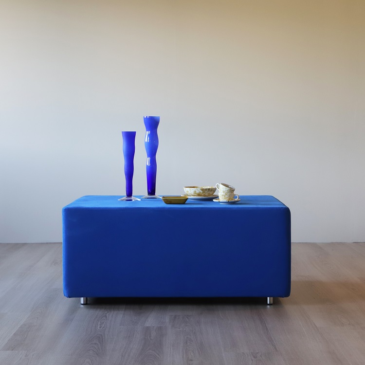 vidunderlig levende blå farve i Alcantara-stof.\nOttomaner, også kendt som