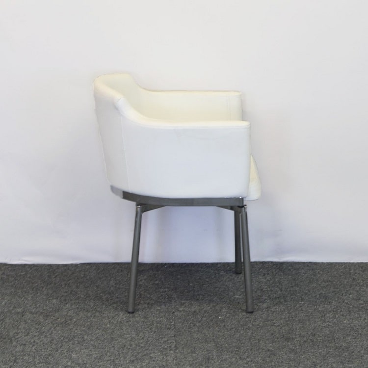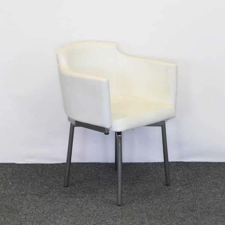 En vit konferensstol är alltid snyggt men denna är mer en så! Den ser för många ut som en helt vanlig konferensstol men den har mycket mer att erbjuda. Denna stol går att rotera sidledes vilket gör dig mer flexibel när du sitter i den. Här har du en smart, snygg och skön stol i vitt tåligt skinn som är lätt att hålla rent. Den kommer definitivt att bli en favorit på kontoret.
