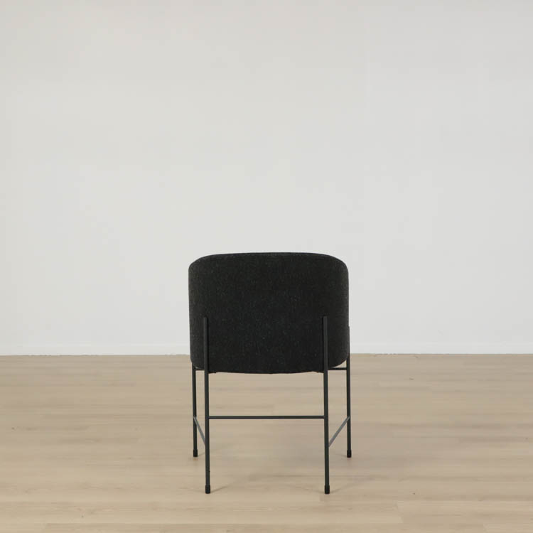 Här i mörkgrått utförande på sittdelen och svarta stålben.