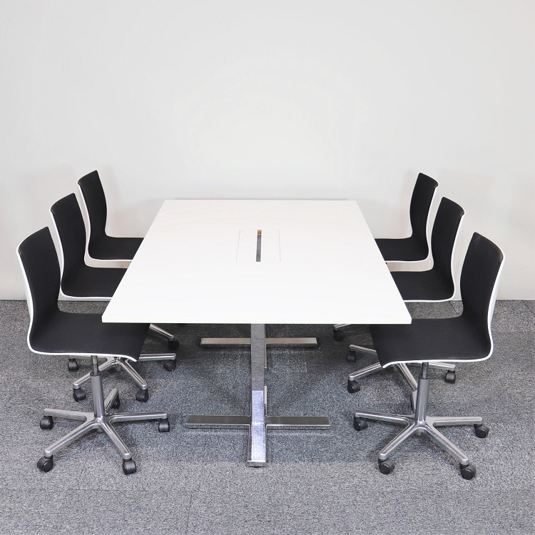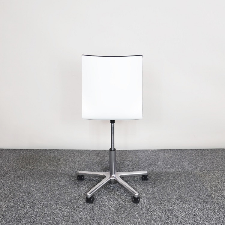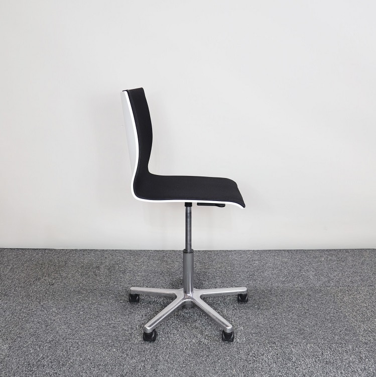 En smidig och bekväm konferensstol som kan ställas in i höjdled. Ryggstödet har en rundad utformning för extra komfort och en lätt stoppning på framsidan. En snygg stol som ger en spännande detalj till rummet med sin vita baksida och svarta stoppning. Ett fotkryss i förkromat utformande gör det lätt att förflytta sig.