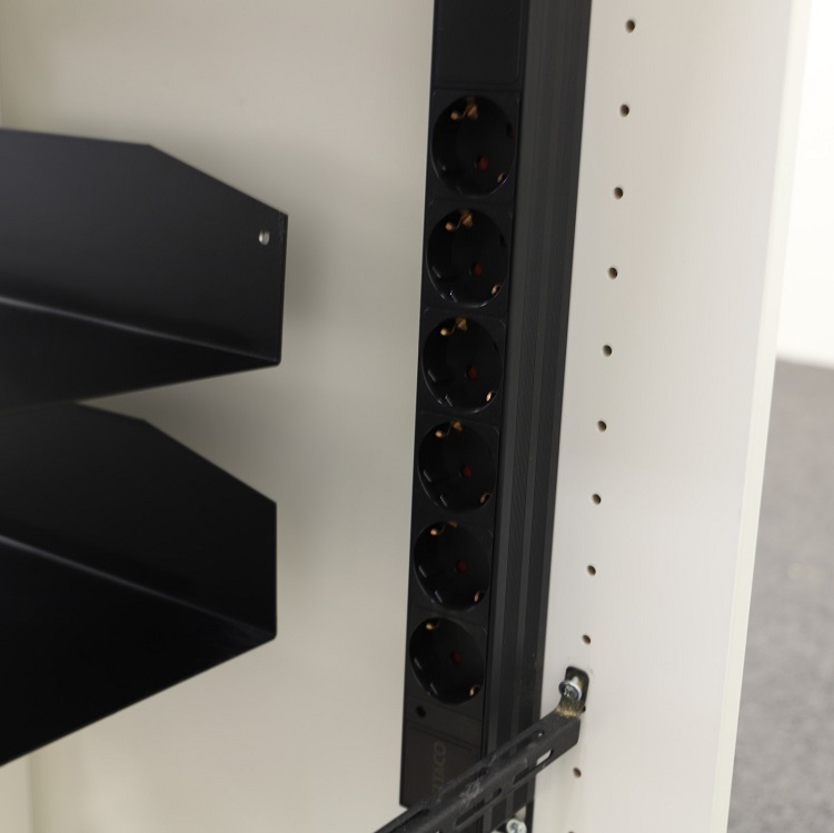 I skåpet finns även två grenuttag med sammanlagt 12 stycken uttag och ett flertal rackskenor.